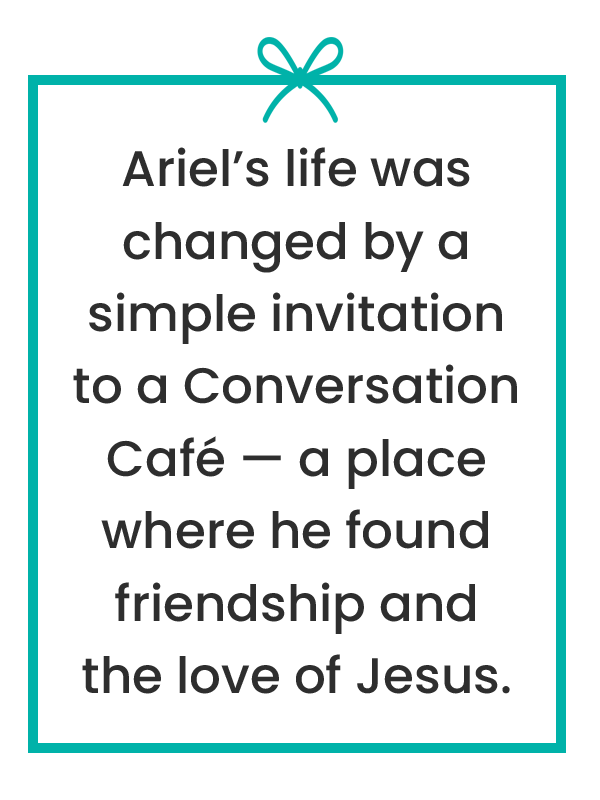 Today, you can launch a Conversation Café with a gift of $50, $100, $250 or $500. Your support equips a church to reach newcomers in their own community, offering friendship, belonging, and the hope of Jesus. You can create moments like the one that changed Ariel’s life — where hope, faith, and love step in and overcome fear and isolation.